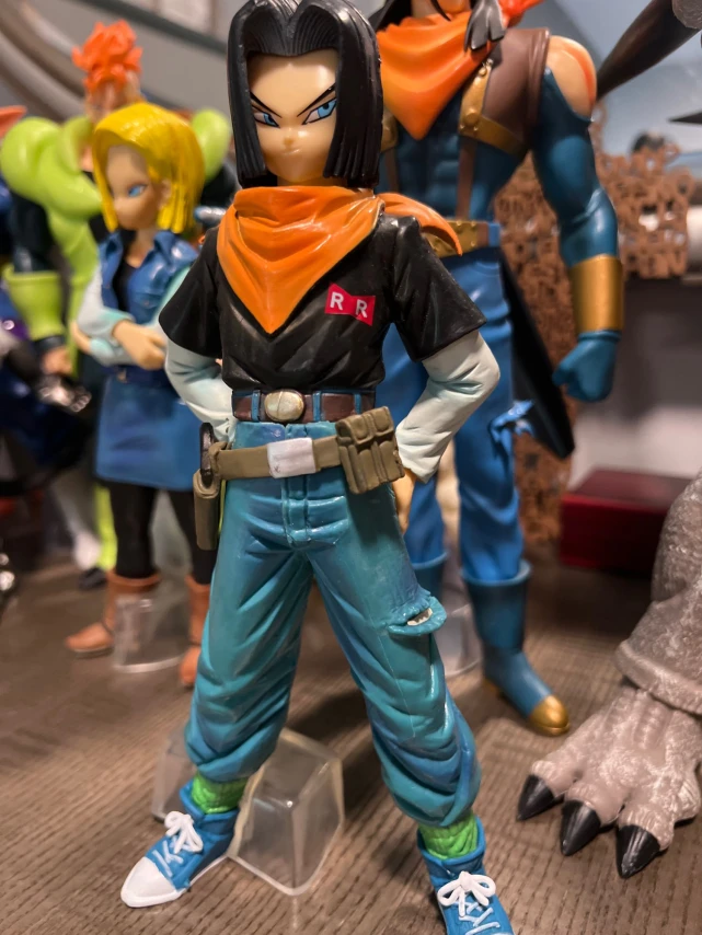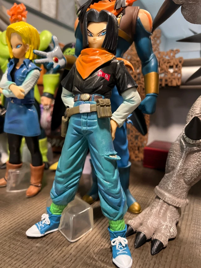 Bonecos colecionáveis do Android 17, um dos androides mais fortes do anime Dragon Ball Z. Com visual fiel ao personagem, destaca seu estilo marcante e atitude confiante. Ideal para fãs e colecionadores que desejam um item especial para a coleção.
