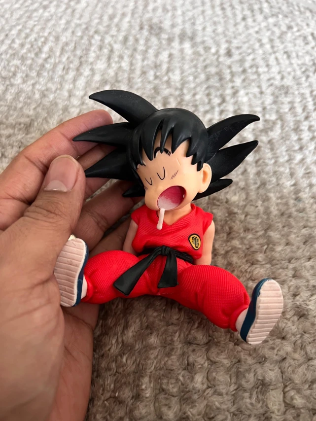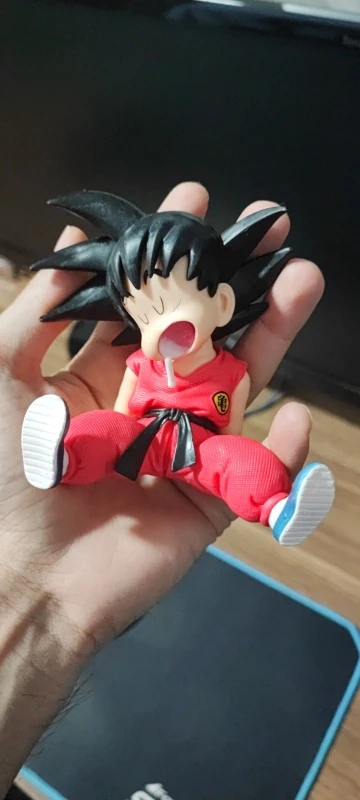Bonecos colecionáveis do Goku em versão dormindo, inspirado no anime Dragon Ball. Com visual divertido e cheio de personalidade, destaca o lado descontraído do personagem. Ideal para fãs e colecionadores que buscam uma peça diferente e criativa para a coleção.